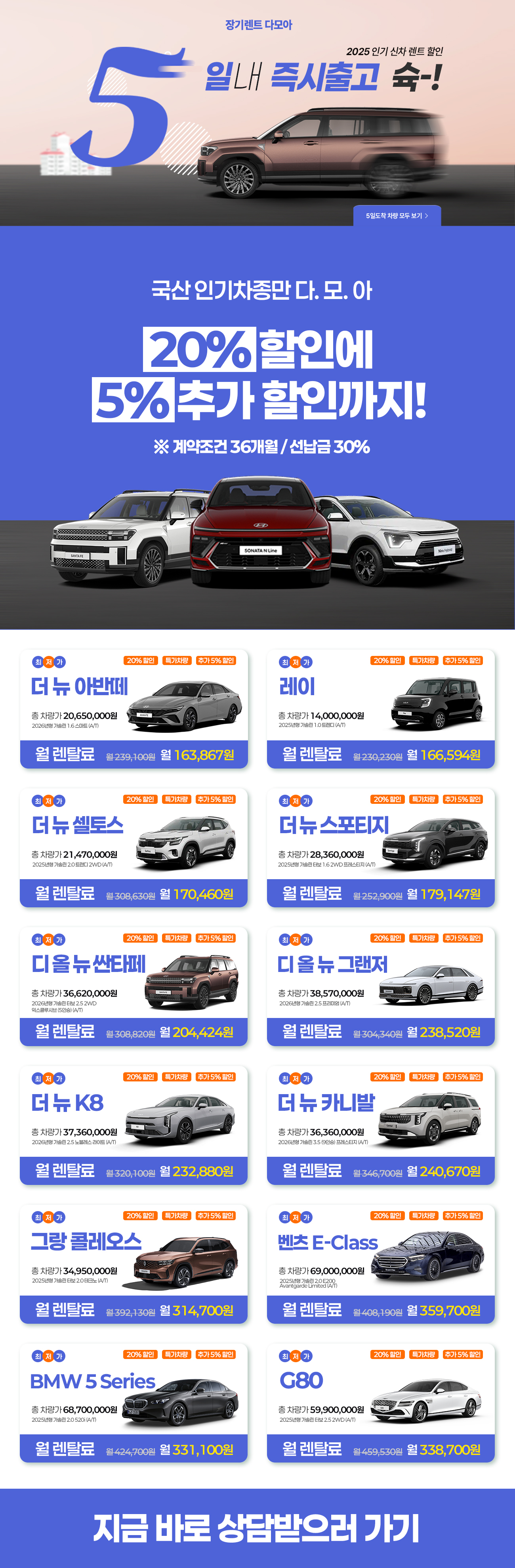 2025년 인기 신차 렌트 할인 이벤트!