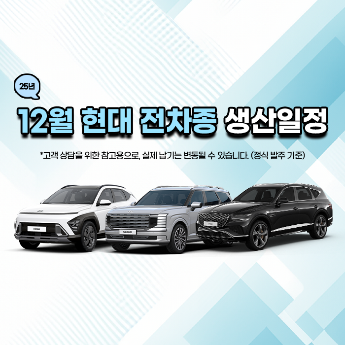 12월 현대 생산일정♥