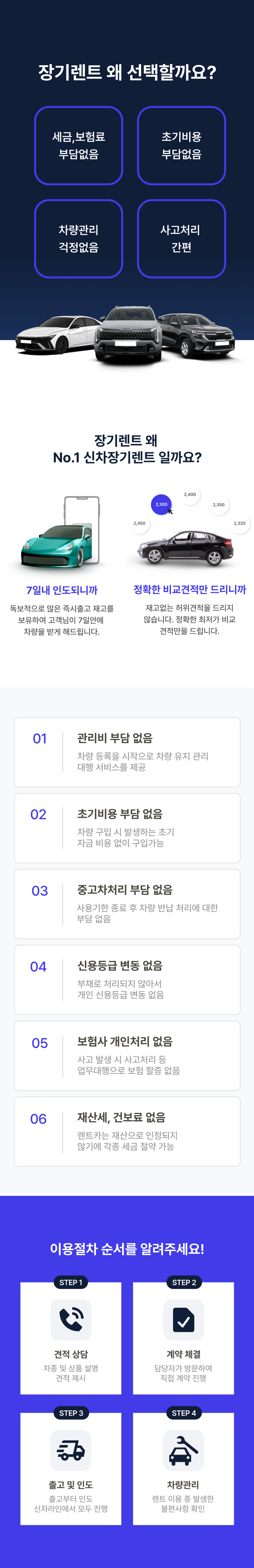 베뉴가 작은 차라 고민도 했지만, 막상 타보니 주행감도 좋고 실내공간도 생각보다 넉넉하네요.계약 과정이 복잡할 줄 알았는데, 상담부터 인도까지 빠르고 깔끔하게 진행됐어요.차량 상태도 완전 새 차 그대로라 관리 스트레스가 없습니다.보험과 세금까지 포함돼 있어서 월 렌트료만 신경 쓰면 되니 편하더라고요.처음 장기렌트 고민하신다면 신차라인, 충분히 믿을 만합니다.